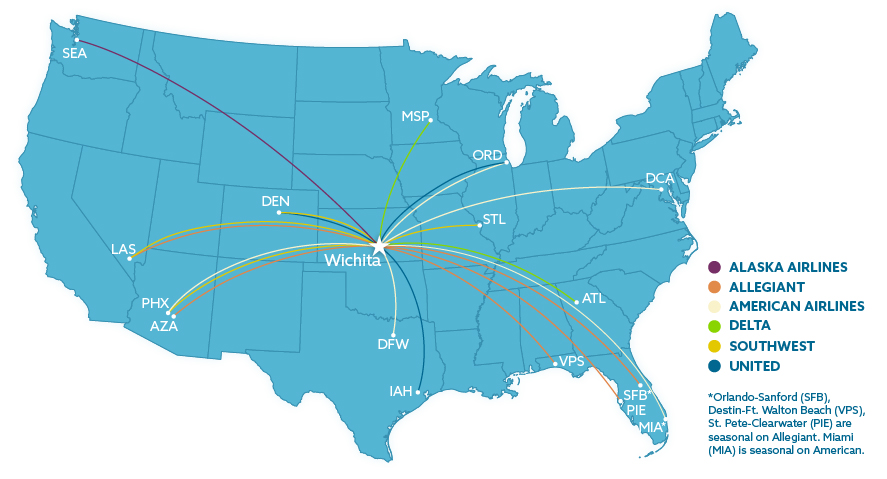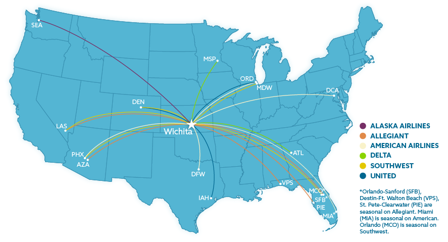 | Non-Stop | Weekly service to Phoenix-Mesa and Las Vegas. Seasonal service to Orlando-Sanford, Destin, and St. Petersburg. |